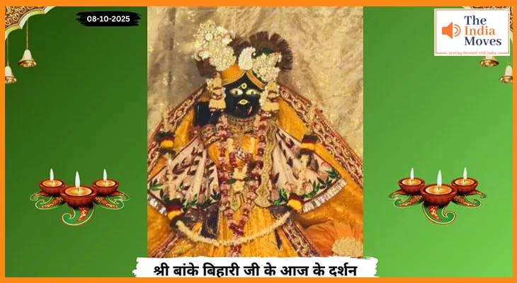 Banke Bihari Ji 08 October Darshan: बांके बिहारी जी (Banke Bihari Ji) के आज के दर्शन (Today Darshan)। हिंदू पंचांग (Hindu Calendar) के अनुसार आज कार्तिक महीने की शुरुआत हो चुकी है। आज 08 अक्टूबर 2025, बुधवार है और यह दिन धार्मिक दृष्टि से अत्यंत शुभ माना गया है। आज से शुरू हुआ कार्तिक मास भगवान विष्णु की उपासना के लिए सर्वश्रेष्ठ माना जाता है। कहा जाता है कि इस माह में पूजा, व्रत और दान करने से असीम पुण्य की प्राप्ति होती है। आज के पंचांग के अनुसार आज शुक्ल पक्ष की द्वितीया तिथि है और उत्तराभाद्रपद नक्षत्र का योग बन रहा है। बुधवार के दिन भगवान गणेश जी की पूजा करने का विशेष महत्व होता है।